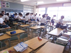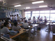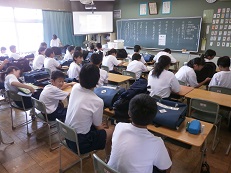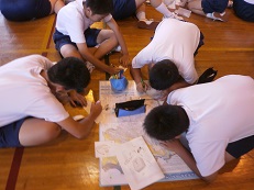 明戸中学校は利根川が近いので利根川や小山川が氾濫した場合を考えて、どこに避難するべきか、深谷市から出ている「ハザードマップ」を使い避難場所を考えたり。何を持って避難すればいいかグループに分かれて考えました。ニュースで九州地方に大雨が降って被害が出ている今日の状況です。いざというとき、どんな行動をとったらいいか考えてみましょう。