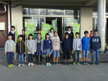 11月20日(火)朝7:30、明戸小学校に生徒会本部役員の新井さん、若松さん、岩坪くんが集合し、今年2回目の小中合同あいさつ運動が行われました。この運動は、人権教育の小中交流の体験活動として、平成26年度から始まった活動です。