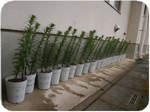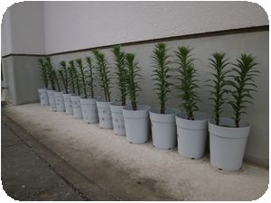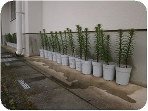 ユリが成長して大きくなってきました。どの鉢のユリも30cmほどに成長しています。(6月4日)