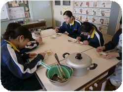 本年度最後の家庭科の授業がありました。最後は白玉団子の調理実習でした。甘しょっぱいタレときなこでおいしくいただきました。