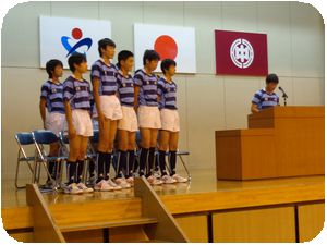 新人戦の県大会が4日から始まります。今日は県大会に出場するラグビー部とバドミントン部の壮行会が行われました。2つの部の部長より大会への意気込み、支えてくださった人への感謝のことば。生徒会役員より励ましのことば、校長先生からは「挑戦」することのお話がありました。