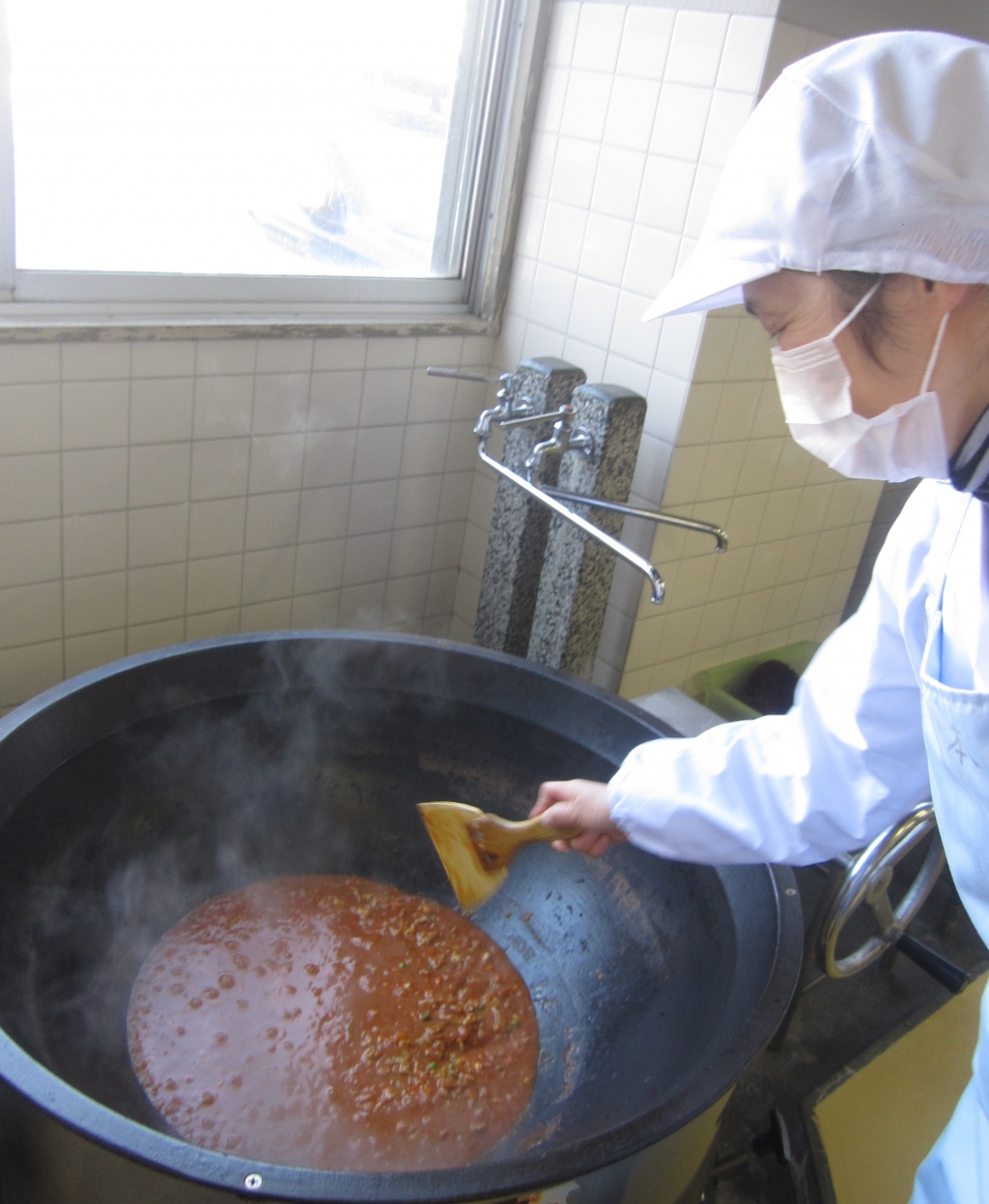 ケチャップ・カレー粉・チリパウダーなどで味付けした特製ソースを作っています。