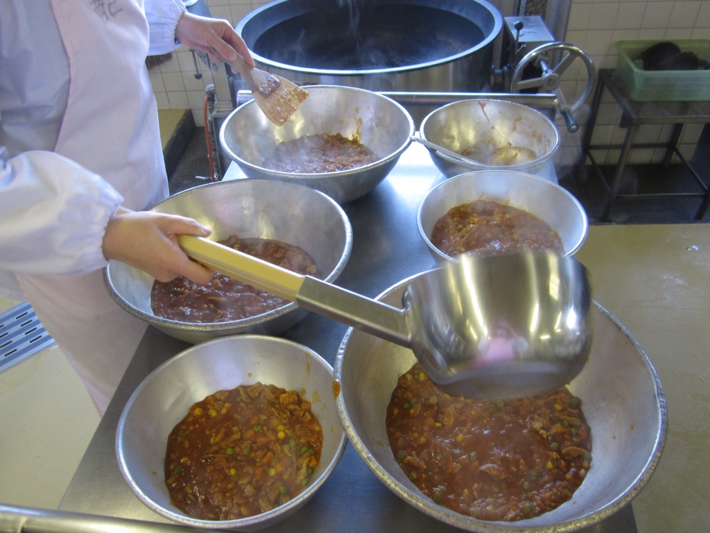 今日は、いつもの白飯ではなく、「キャロットピラフ」。水色の箱ではなく、茶色のごはん箱が届きました。