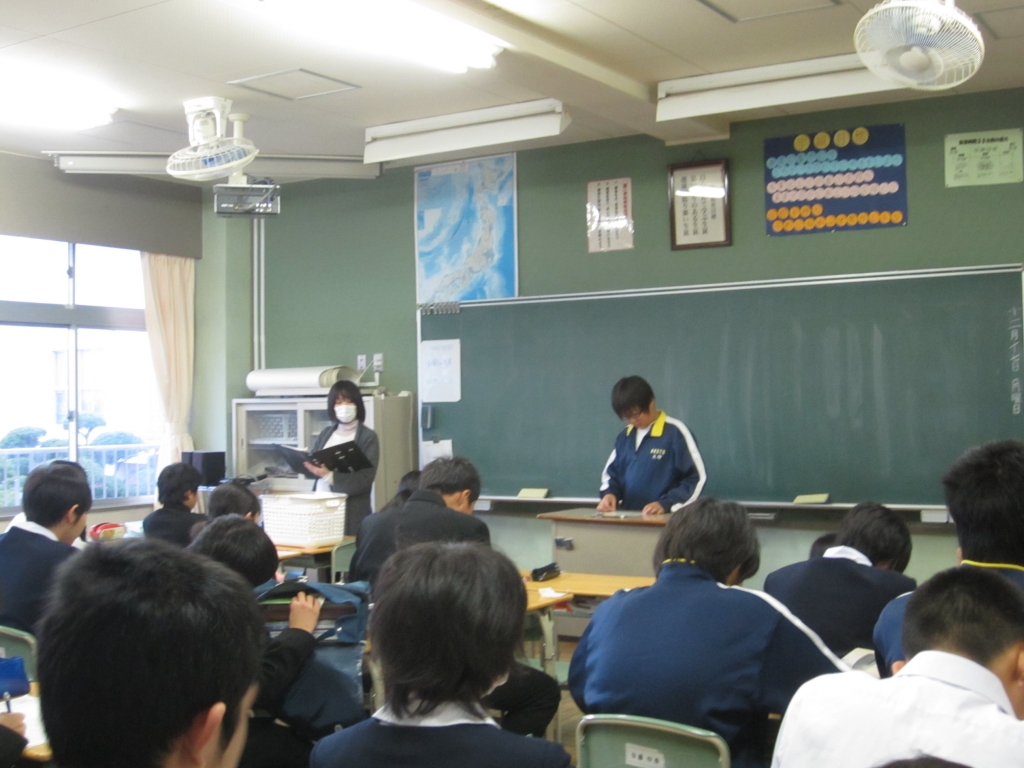 〔18日(火)〕 2学期最後の生徒朝会。担当は美化委員。