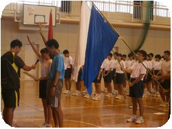 今日は体育祭の準備が午後予定されていましたが、あいにくの雨でテントをグランドに運んで組むだけで、残りは明日準備することになりました。