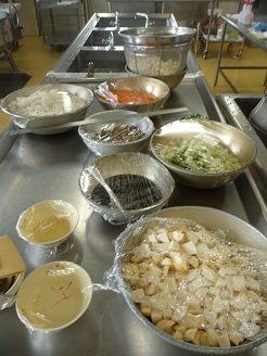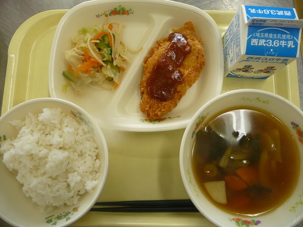 今日は、体育祭の応援献立ということ「みそかつ丼」でした。油でカリッと揚げたチキンかつにみそ・お砂糖・みりん・お酒で味付けたみそだれをかけて食べてもらいました。明日は、「ラグビー部が大会だから、おかわり多めにください。」という声もあり、とても微笑ましかったです。ラグビー部の東日本大会も合同体育祭もみなさん全力が出せるように頑張ってきてください!