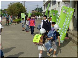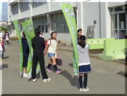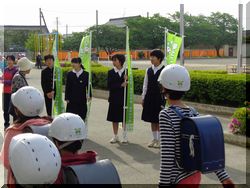 5月9日(木)朝、明戸小学校で小中合同あいさつ運動が行われました。