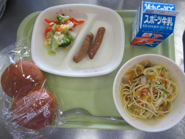 牛乳・麻婆ラーメン・お揚げのサラダ・彩の国肉まん・はちみつゆずゼリー