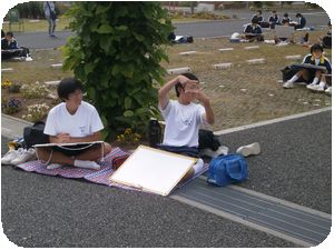 前日は雨が降り、実施できるか心配していましたが写生会が実施できました。途中からは日も出てきてむしろ暑いくらいの天候になりました。1年生は惣持寺、2年生は明戸公民館、3年生は中学校周辺を画きました。感動的な絵ができましたか?