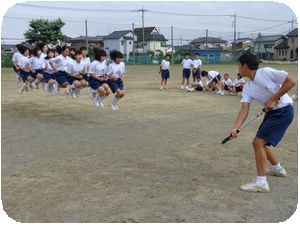 今日も好天に恵まれ外で体育祭の練習がグランドで行えました。今日の練習は各チームとも長縄とびの練習を行いました。なかなかタイミングが合わず連続して跳ぶことができなくてどのチームも苦戦していました。本番では何回跳べるようになるのでしょうか。