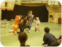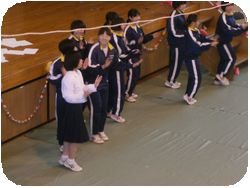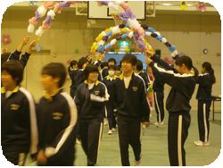 1・2年生の出し物として、3年生を囲んでダンスが披露されました。最後は3年生も加わって全校で踊りました。