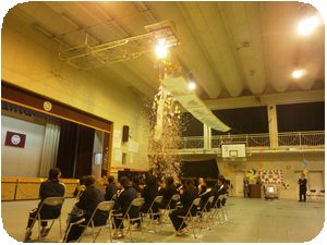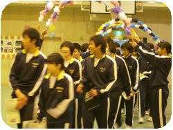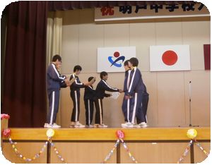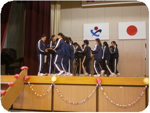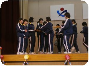 思い出写真の上映の後、部活ごとに準備した色紙を後輩から3年生へ贈りました。