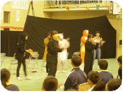午後の部は劇団民話芸術座の演劇『鬼の小づち』の芸術鑑賞です。3年生が1人劇に出演しました。