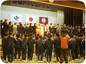 閉会式では今年は職員合奏、そして恒例の校長先生の「栄光の懸け橋」を全員で歌いました。