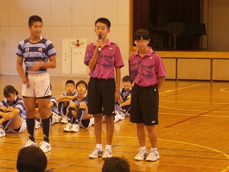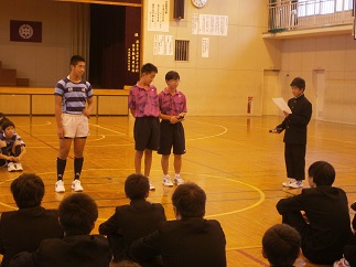 ラグビーとソフトテニス部の3年生からの応援の言葉がありました