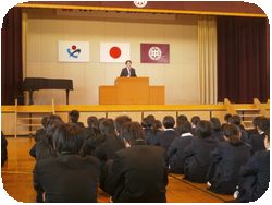 全校朝会で清水先生より人権月間について説明の後、校長先生より講話がありました。