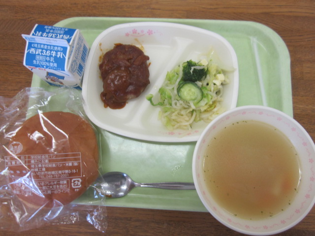 デミグラスソース味のハンバーグでパンにはさんで食べます。