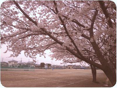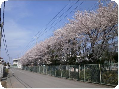 グランド南とテニスコート北の桜が満開になりました。