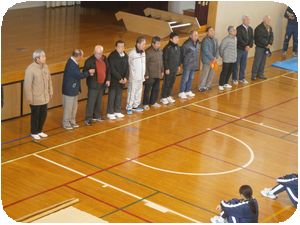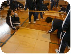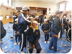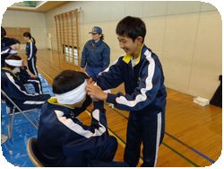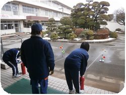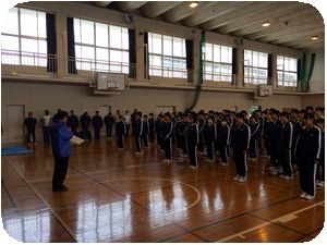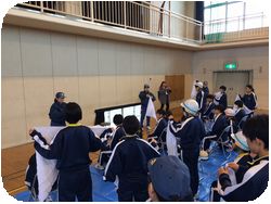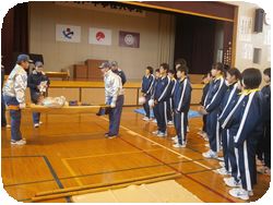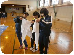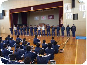 今回は雪のため外が使用できないので、体育館内で訓練を行いました。