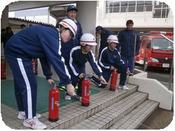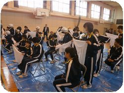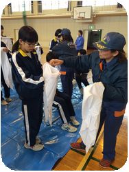 もしも大災害が発生した場合、大人は災害の対応などで地域に残っていない場合が考えられます。また、中学校は緊急避難場所として開放することになり、中学生が中心となって地域の災害処理に対応する必要があります。今日の訓練はそのための防災訓練なのです。