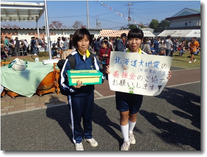 明戸中では、北海道胆振東部地震の義援金として、2学期の各行事(合同体育祭、青桐祭、ふれあい祭)で募金活動をさせていただきました。