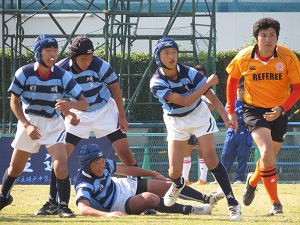 三連休、最終日の日曜日、ラグビー部は新人戦一回戦に臨んだ。地区予選では、一回戦敗退という悔しい結果だったが、県大会では、みごと、一回戦を突破した。明戸中は、大会参加12校の中で、明らかに、体格的には一番小さいという不利な状況にもかかわらず、チームプレーに徹した、全員ラグビーで、大型FWの深谷中を41対21で、退け、県ベスト8に輝いた。次は、東日本大会県予選準優勝の城西川越中、相手にとって不足無し、次も、気持ちの入った、炎のタックルで、明中旋風を吹かせてくれることを期待したい。