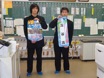 12月4日(金)卒業生で深谷高校ラグビー部の生徒が県大会優勝と花園出場の報告に来校しました。