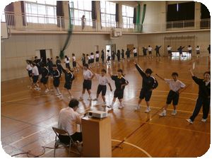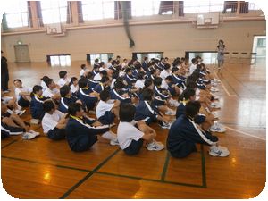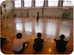 5校時に宿泊体験学習のキャンファイヤーの練習が行われました。
