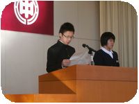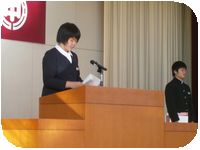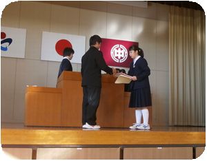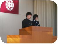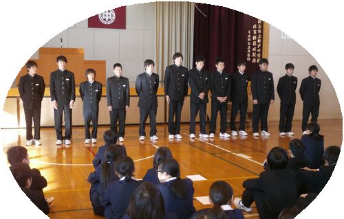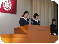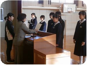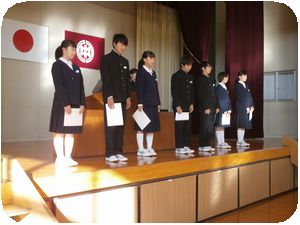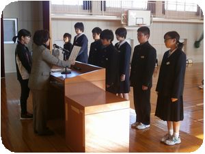 朝会で学級委員長と生徒会本部役員の任命式が行われました。