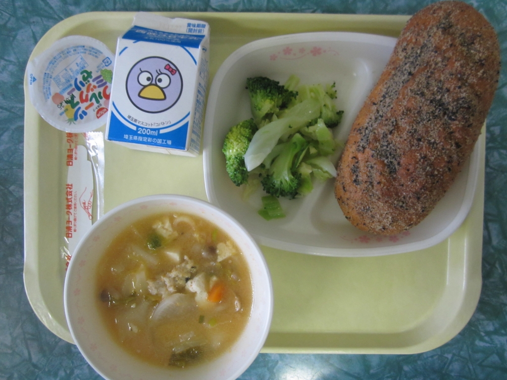 牛乳・麻婆ラーメン・お揚げのサラダ・彩の国肉まん・はちみつゆずゼリー
