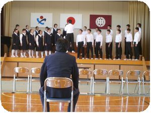 歓迎セレモニーとして学年合唱「あなたへ」を市長に聴いていただきました。