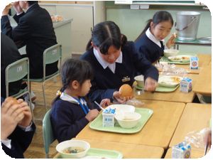 ふれあい給食で明戸幼稚園児来校