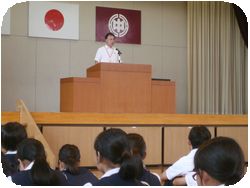 校長先生より体育祭での明中生の頑張りや活躍についてお褒めの言葉がありました。特に借り物競走でスピーチを担当した2人にふれて、グローバル化についてや日曜談話会など視野を広く持って欲しいことについて話がありました。