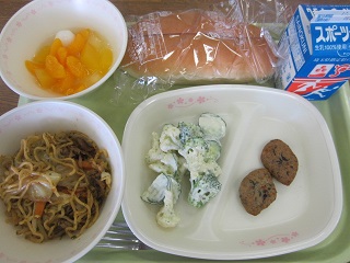 牛乳・麻婆ラーメン・お揚げのサラダ・彩の国肉まん・はちみつゆずゼリー