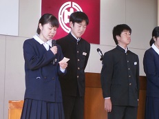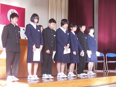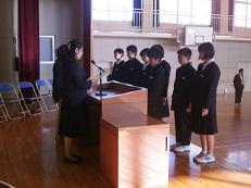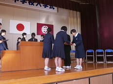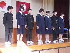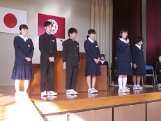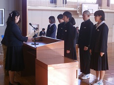 生徒会本部役員選挙が終わり、新生徒会本部役員の任命式と引継ぎ式が行われました。