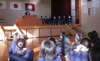新生徒会役員より決意表明と教頭先生より講話がありました。