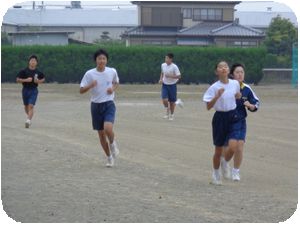 今朝から駅伝の練習が始まりました。1年~3年生の選手がグランドを黙々と走ります、駅伝の代表選手以外にラグビーとバドミントンの部員も朝練習をかねて走ってました。頑張れ!