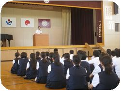 県内で起きた中学生の事件を受け、臨時の全校朝会が行われて校長先生より命を大切にすることについて話しがありました。