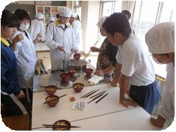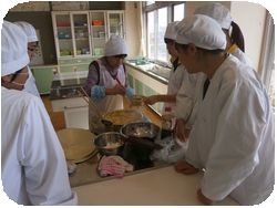 2年生の家庭科の授業で地域ボランティアの方の協力をいただき煮ぼうとう作りが2・3校時に行われました。