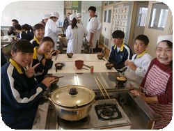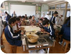 各班ごとに食材が変えてあり、違った味の煮ぼうとうを味わうことができます。先生方も材料費を払っておいしくいただきました。