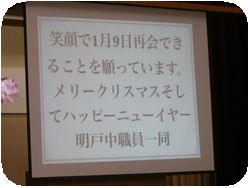 終業式後に表彰がありました。今回は2学期間にもらった賞状が大量にあり、のべ人数で109人分の表彰がありました。明中生活躍しましたね。