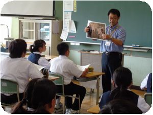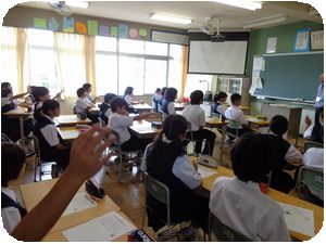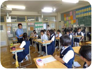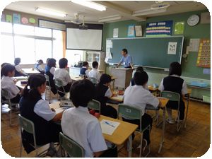 今日の道徳の授業は校長先生が行いました。本校の実践目標の1つ、「