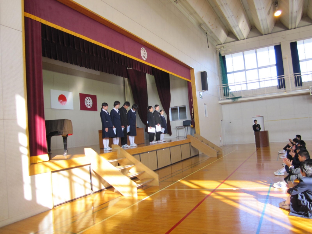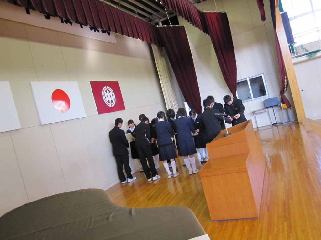 本日、新生徒会の任命式と新旧生徒会の引継式が、行われました。