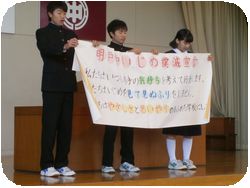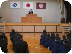 人権月間にあわせて生徒会から「いじめ撲滅宣言」に関して生徒朝会が行われました。生徒会長からも「人は見た目が一人一人違うが、それは個性として見ればいい」と全校生徒に呼びかけがありました。