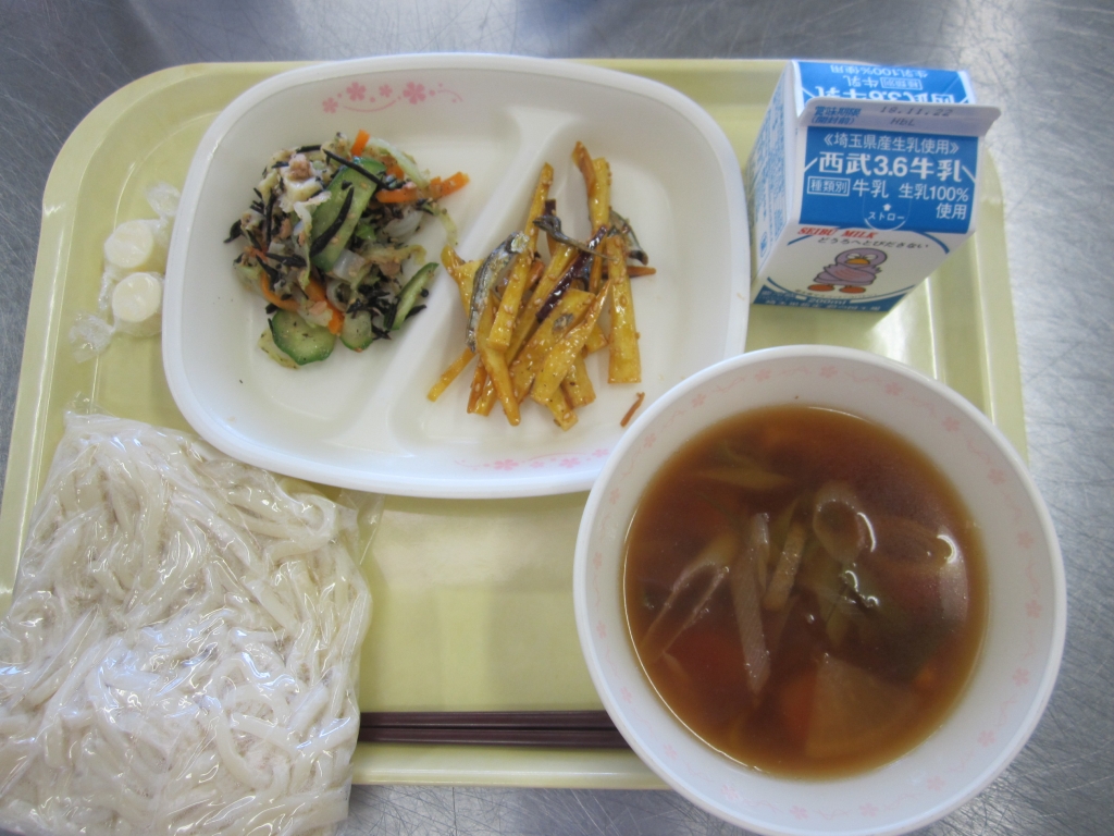 今日は、さつまいもを千切りにして油で揚げて、松葉に見立てた「松葉芋」が給食に出ました。