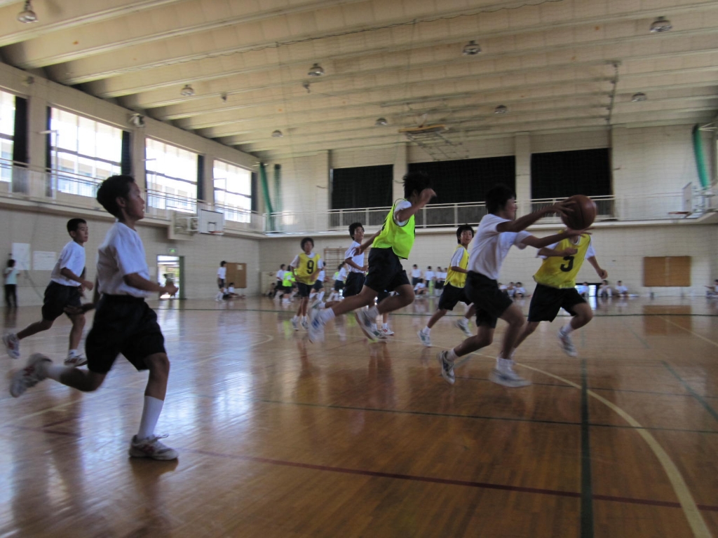 熱中症が心配される中、どの生徒も水分補給をこまめに行い、適度に休憩