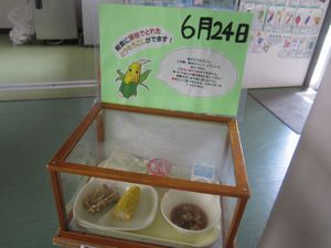 牛乳・ごはん・星のハンバーグ・キャベツのペペロンチーノ風・かき玉汁・クリスマスセレクトケーキ