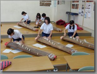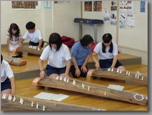 青桐祭での発表に向けて、3年生の希望者による箏の練習が2学期になり再会しました。地域ボランティアの方の指導のもと、放課後に熱心に練習に励んでいます。